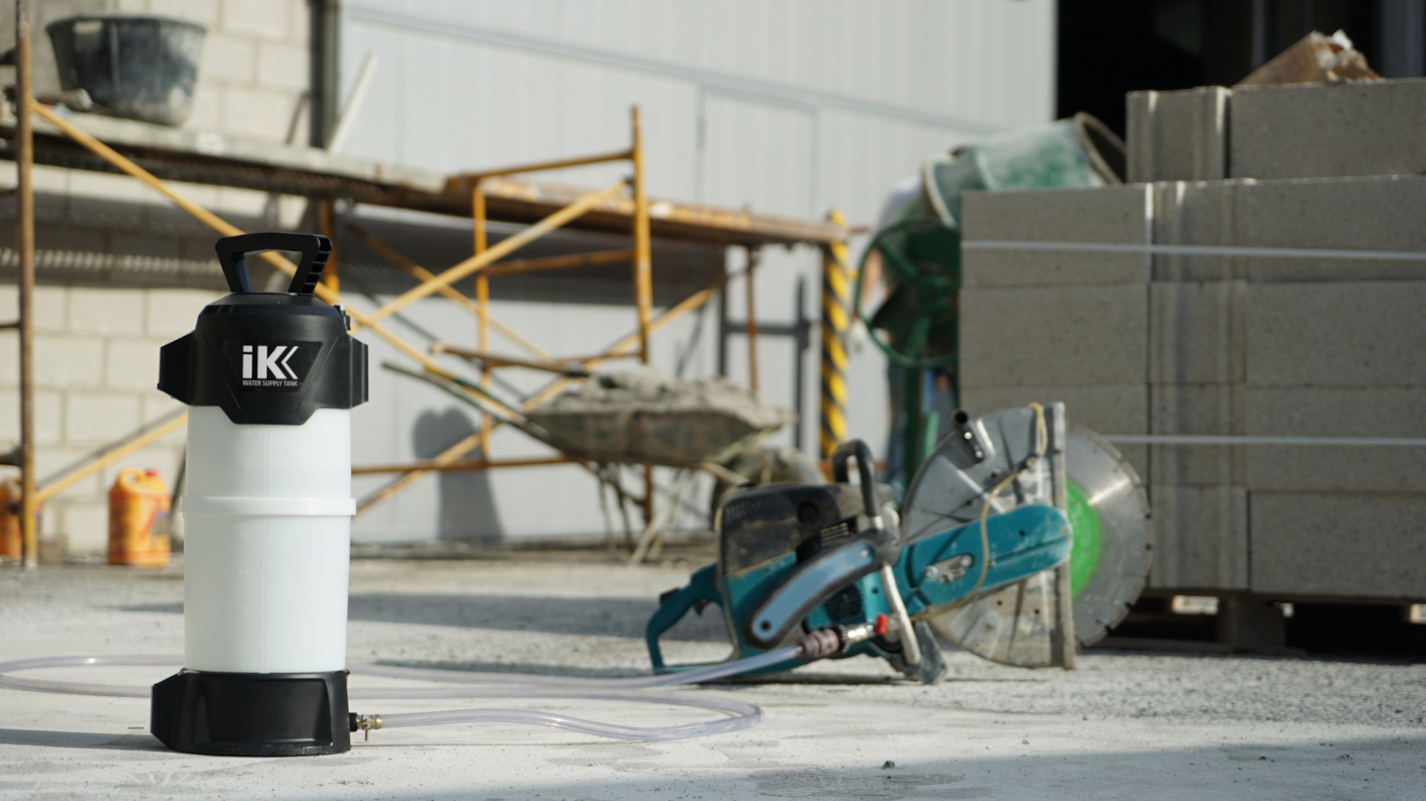 El IK WATER SUPPLY TANK es un imprescindible para tareas relacionadas con el sector de la construcción. Esta herramienta facilita el suministro de agua a presión en equipos de corte, pulido, fresado, desbastado y taladrado cuando no se dispone de la fuente de agua a presión. Protege al operario frente a la inhalación de polvo y cristales de sílice suspendidos en el aire. Además, se puede usar para la refrigeración de elementos de corte y perforación, evitando el sobrecalentamiento de dichas herramientas.